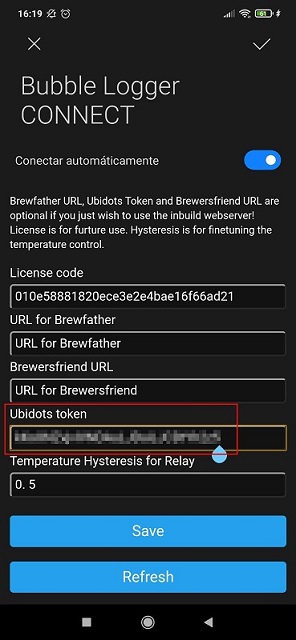 – Configuraremos los litros de batch en la configuración de Bubble-Logger.