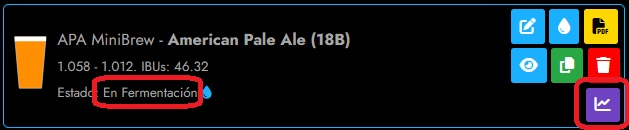 Una vez comenzada la fermentación desde el botón «Ir a fermentaciones activas» o desde el menú principal, puedes acceder a ver las fermentaciones activas:
