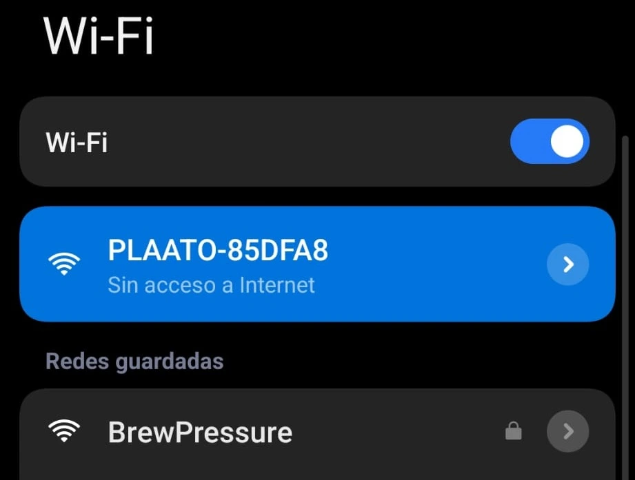 En ese momento al retirarlo ya podrás conectarte a la red wifi de tu plaato (se llamara PLAATO-XXX):