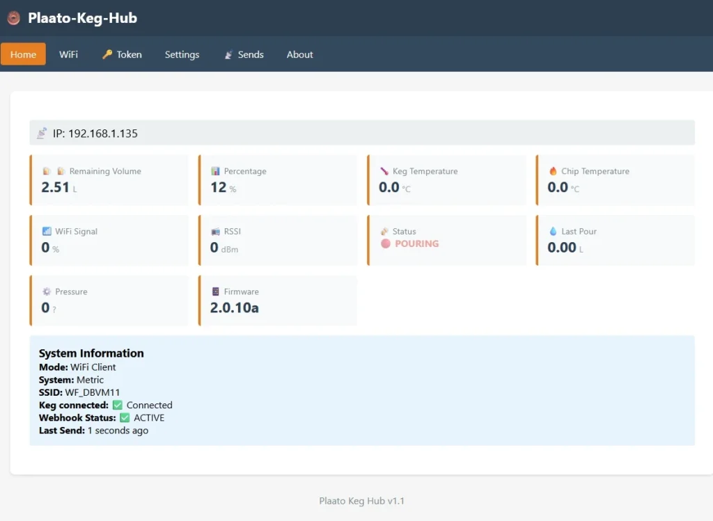 En este punto ya está integrado Plaato con tu PlaatoKegHub, ya puedes ver los datos desde un móvil conectándote directamente a tu PlaatoKegHub incluso puedes cambiar valores de tu plaato desde el menú de ajustes, como la Tara, o el volumen máximo del barril: