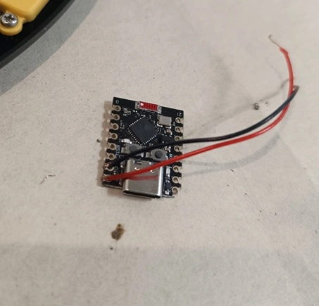 Soldamos los pines de la alimentación del ESP32 (5V y gnd):